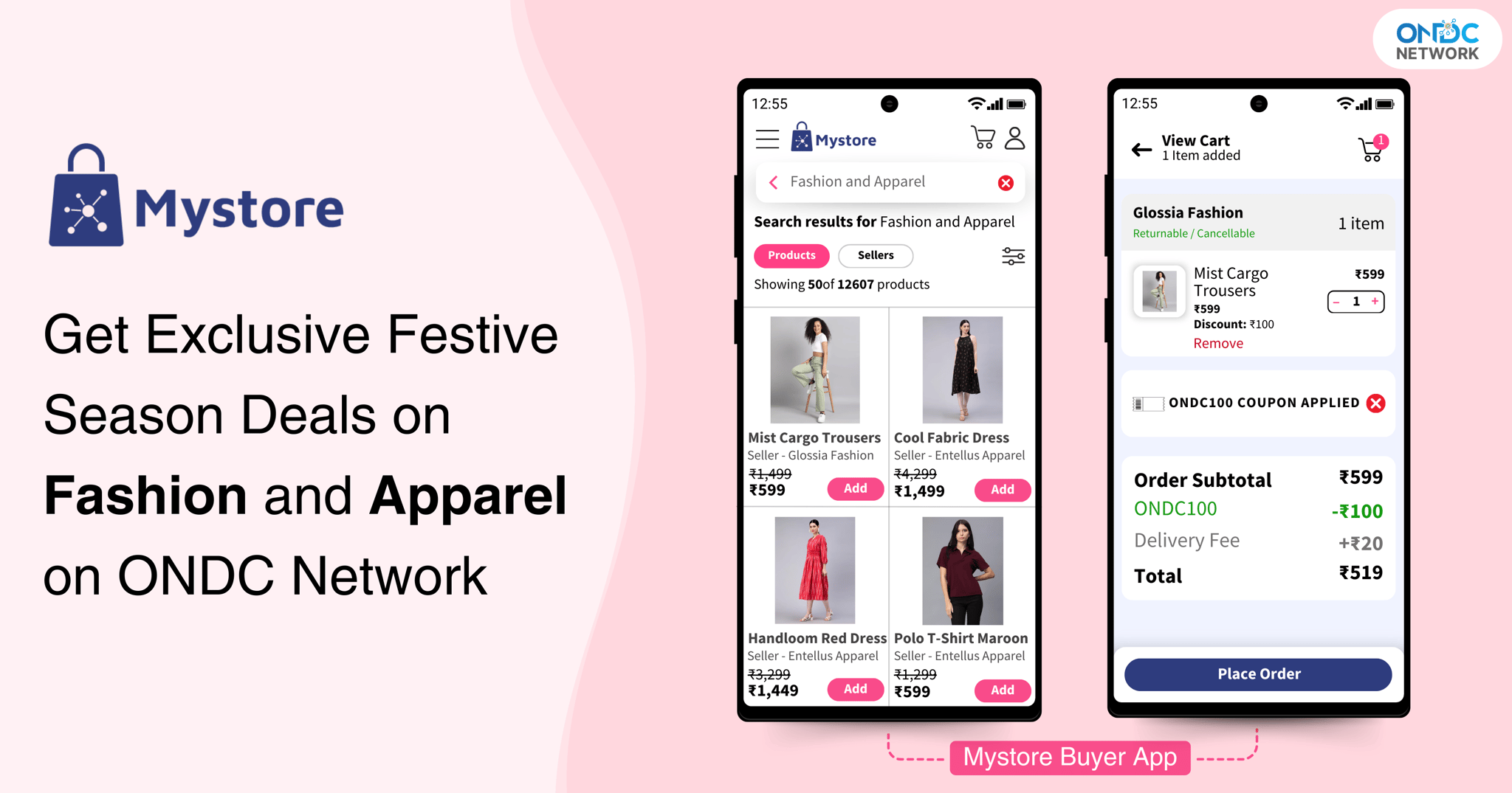 You can easily avail all the festive season deals on ONDC network using the Mystore Buyer app (or any other buyer app like Paytm, Magicpin, Craftsvilla, etc)