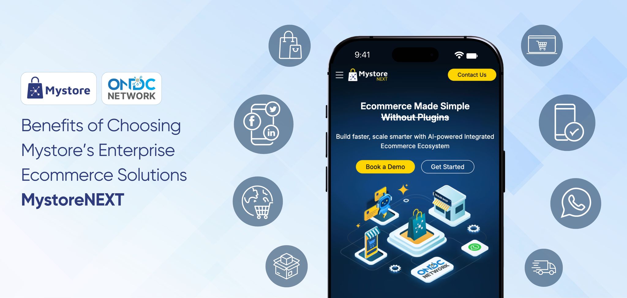 Plus, when you choose MystoreNEXT enterprise ecommerce solutions, your business can have its own branded store on the ONDC Network with full compliance and visibility across 20+ buyer apps.