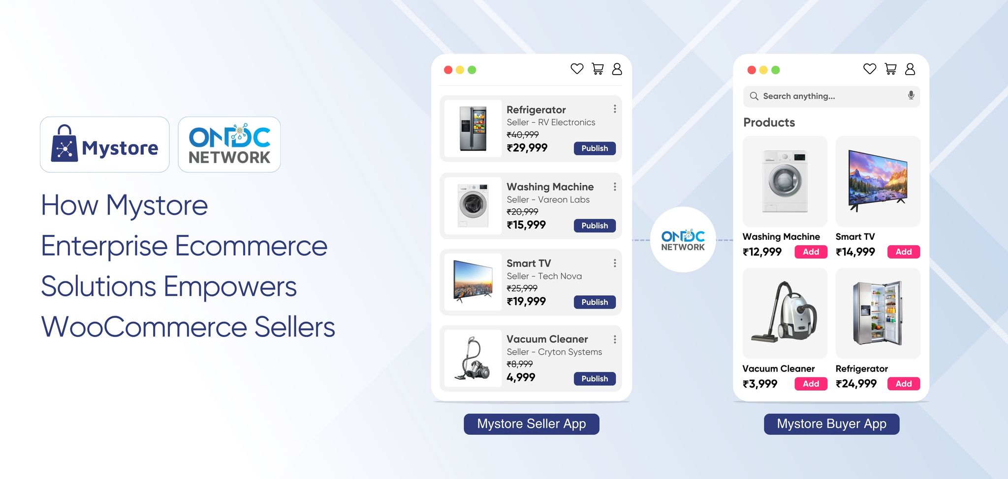 MystoreMystore® is an ONDC connected marketplace built in India for Indian sellers. Mystore is the first ONDC network participant to connect as a Buyer and Seller NP.  You can register as a seller on Mystore and upload your catalogue. You will have a dedicated Seller page (digi-catalog) along with a Unique QR Code for your page that you can market to your buyers. Your catalogue will also appear on the ONDC network through the Mystore Buyer App and other buyer apps catering to related product domains. Mystore provides a comprehensive seller dashboard to manage your products, orders, and payouts. Mystore also facilitates seamless online shopping across categories with its Mystore Buyer App.https://www.mystore.in/s/62ea2c599d1398fa16dbae0a/66defda954ce55002beebf8c/mystore-logo-480x480.png