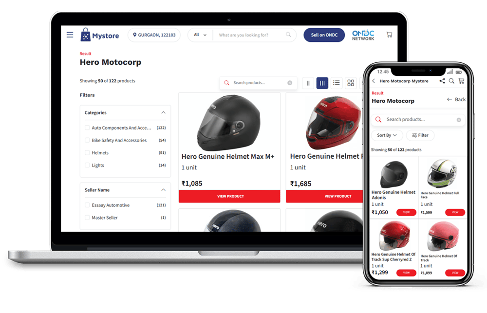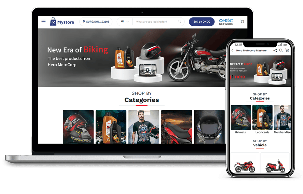 With Mystore’s cutting-edge, ONDC Network compliant solutions, Hero MotoCorp successfully transformed its legacy offline business into a digital powerhouse with a nationwide reach. With a dealer-powered marketplace and seamless D2C/B2B solutions to extensive customizations and streamlined logistics, Mystore provided Hero with a comprehensive ecommerce ecosystem tailored to its unique needs.