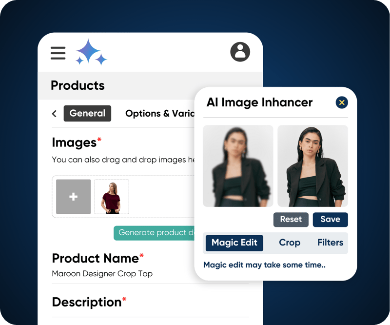 Generate optimised product descriptions and refine images instantly for higher engagement
