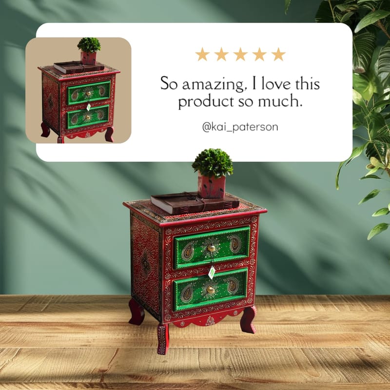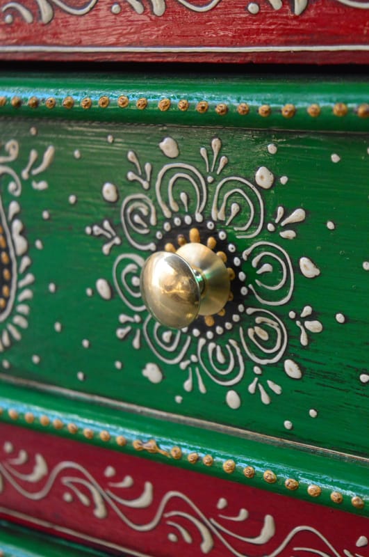 This is a beautiful and unique piece of furniture that is perfect for adding a touch of style to any room. The chest is made of high-quality wood and features intricate hand-painted designs. It has two drawers that are perfect for storing small...