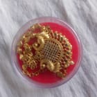 This stunning gold-plated kamarband is the perfect accessory to add a touch of elegance to your traditional Indian outfit. The kamarband features a beautiful peacock design that is studded with shimmering white stones and green stones. The kamarband is also adjustable, so you can find the perfect fit.