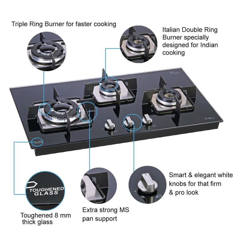 Read MoreBuy Glen's 3 Burner Glass Hob Triple Ring Burner Italian Double Ring Burner Auto Ignition (1073 SQHTINTR). Discover sleek designs online at great prices and discounts!