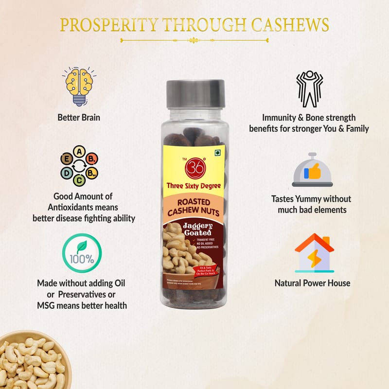 360 Degree Roasted Jaggery(Gud) Cashews Nuts Kaju, 200 gms (2 x 100gms Each)