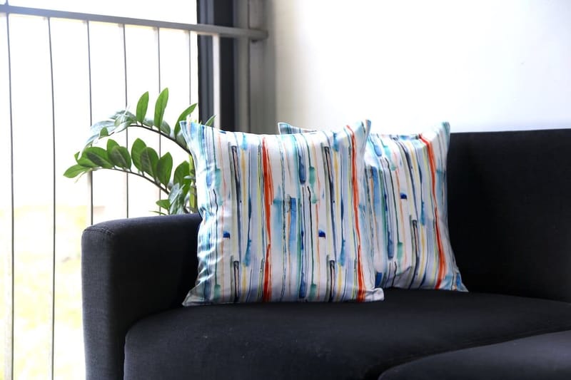 Unleash your inner artist with this stunning modern abstract cushion. Featuring an abstract brush strokes design in delicate watercolour shades,itÕs perfect for adding colours to sofa, bed or armchair.