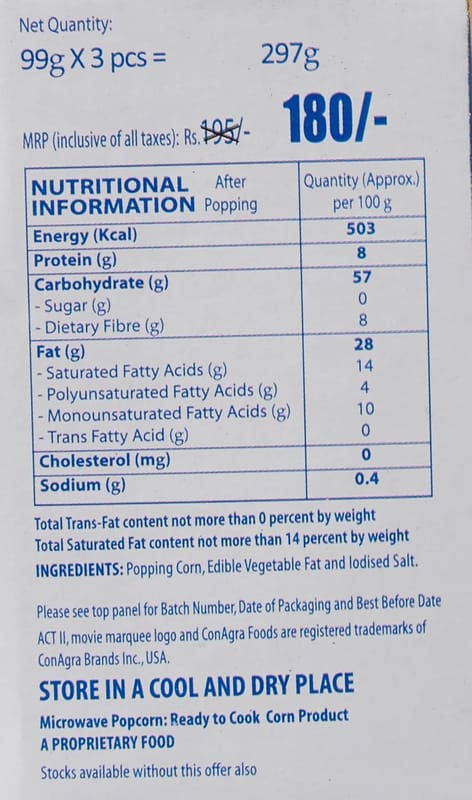 | Common name | Act Ii Microwave Popcorn Original, 297G |