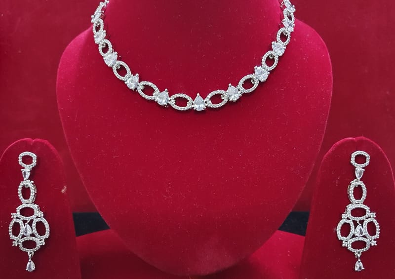 Enhance your personal style and make a dazzling statement with our exquisite AD Necklace. Crafted with precision and adorned with shimmering simulated diamonds, this stunning piece of jewelry exudes grace, sophistication, and timeless bea...