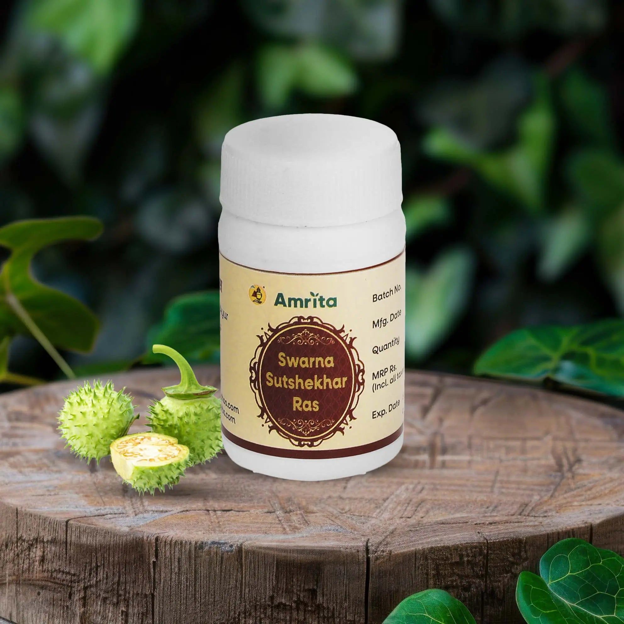 Amrita Swarna Sutshekhar Ras is a complex herbo-mineral preparation that treats the imbalance of doshas (vata, pitta & kapha) in human body. It is highly effective in treating hyperacidity, abdominal tumors, bloating, vomiting & intestinal obstruction. It is fortified with real gold and contains other heavy metal ingredients that need to be taken after appropriate medical consultation.
