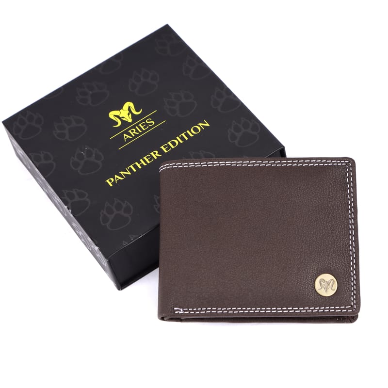 Chic and compact Men's Bi-Fold Wallet perfect for Valentine's Day, Exquisite vegan leather in sophisticated brown with white stitching and a golden logo, Meticulously handcrafted design simplifies life and enhances daily routines, Dedicat...