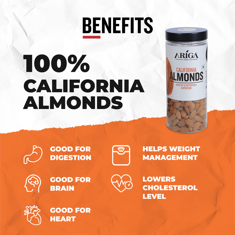 - For a healthy food option, choose Ariga's premium quality almonds, rich in nutrition and perfect for your diet.