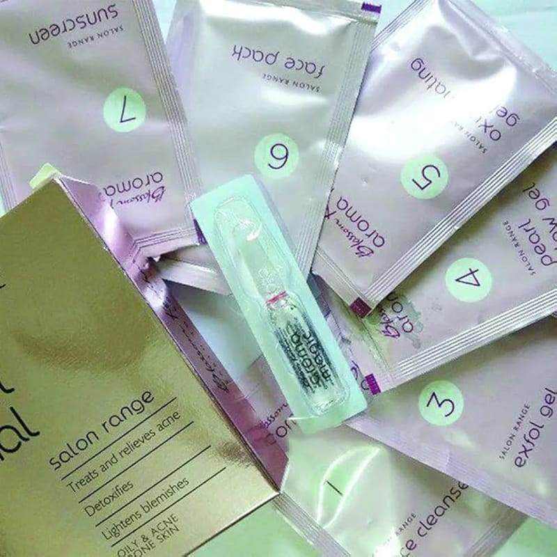 Daily exposure to pollution can make your skin blemished and look dull and lifeless. Aroma Magic Pearl Facial Kit is a 7-step facial kit to treat and relieve oily and acne-troubled skin. This facial detoxifies infected skin from the inside by c...
