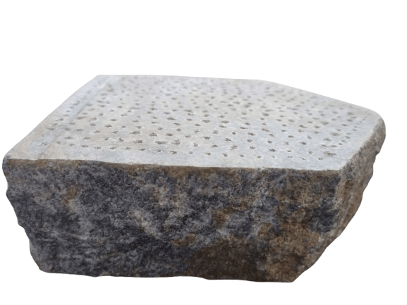 This traditional Indian grinding stone, also known as a "sil batta," is a versatile kitchen tool used for grinding spices, herbs, and other ingredients. It consists of a flat, slightly concave stone base called the "sil," and a cylindrical ston...
