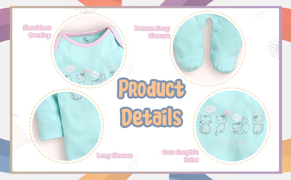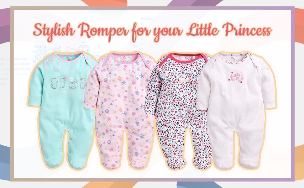 Baby Go Full sleeves Babygrow are made with 100% Pure Cotton to make our infantwear comfortable for your little ones. Baby clothes should be easy to wear and worn everywhere. For more comfort our Babygrow cover the feet as well so that your little one is fully covered and comfortable. If you want style and comfort - go for BABY GO!