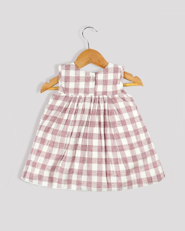 Introducing our Wine Berry and White Checked Frock, a timeless ensemble that seamlessly blends sophistication with contemporary charm. Crafted from high-quality fabric, this frock boasts a captivating checked pattern in rich wine berry and pris...