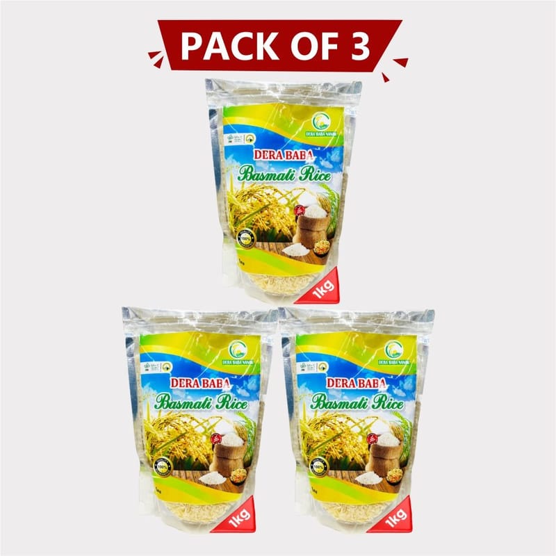 Basmati Chawal 3Kg (3 × 1Kg) by Dera Bera Nanak is a premium basmati rice sourced directly from trusted farmers, delivering long, fluffy, and aromatic grains to your kitchen. Each