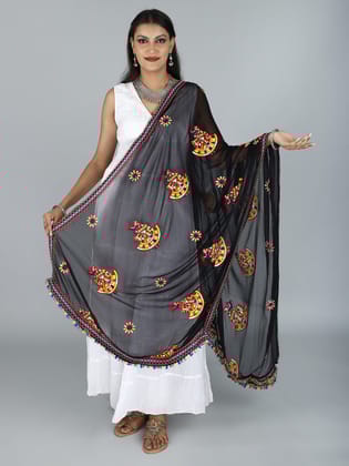 Handcrafted printed dupatta with interesting hand-embroidered floral and mirrors, is dipped in the gorgeous white color and intertwined with colorful threads to form an intriguing pattern. This dupatta drapes effortlessly and warmly is ea...