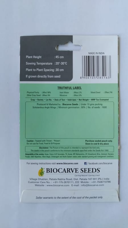 BIOCARVE SEEDS Present Biocarve seeds Present: Also known as Butterfly Flower, these exotic blooms come in a fine colour mix. An attractive border plant, good cut flower and easily raised conservatory plant. Plants thrives in sunny, cool areas....