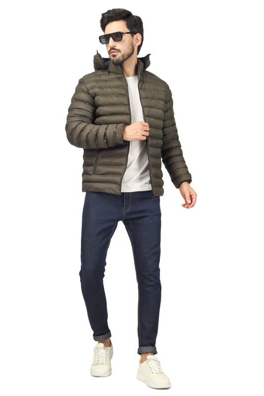 667d1b3e4df86a01034368a9BlueFicus Mens Nylon Quilted Short Length Puffer Jacket (Olive Green)