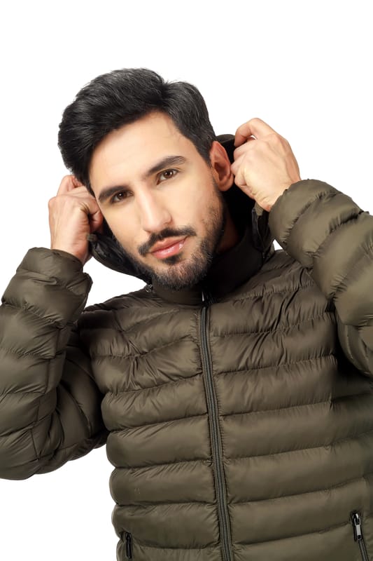 BlueFicus Mens Nylon Quilted Short Length Puffer Jacket (Olive Green)
