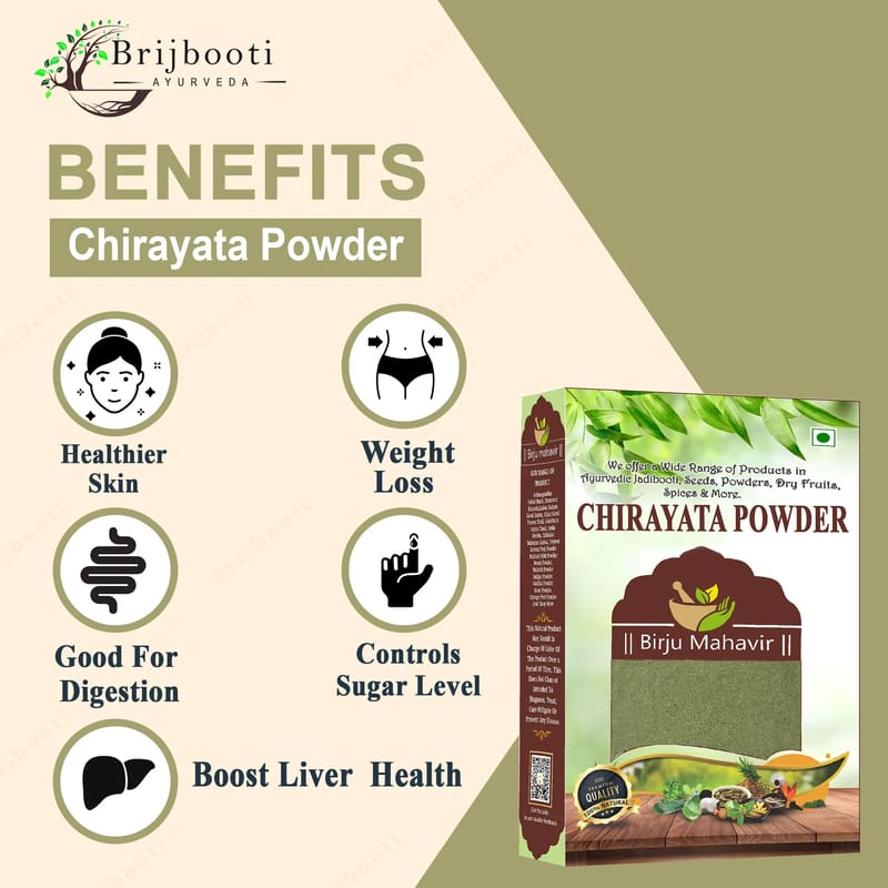 Chirayta Powder is a medicinal herb known for its fever-reducing, digestive aid, anti-inflammatory, liver tonic, antimicrobial, antiviral, and antioxidant properties. It's traditionally used to treat fevers, improve digestion, support liver health...
