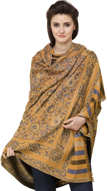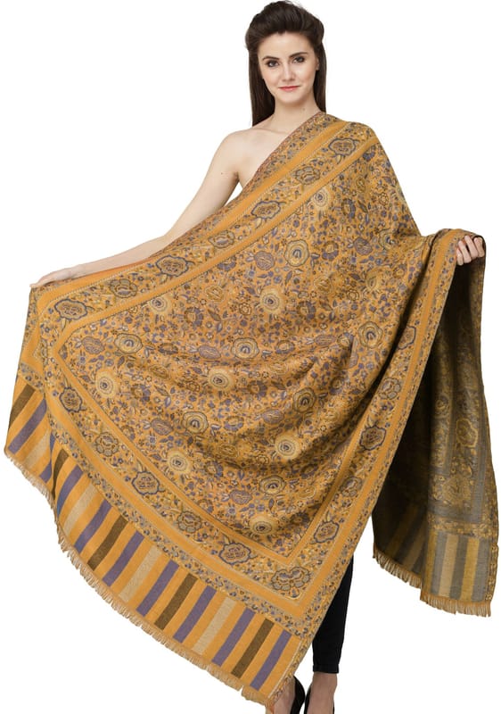 Hosting skilled needlework ornaments and an exquisite spread of multicolored woven flowers and paisleys, this classic kani jamawar stole has just been curated for lovers of ancient art practices. Handmade using silk modal, the shawl employees the beautiful radiant threads to turn and twist into one and another forming a pattern that will not leave your sight or mind. In a contrasting shade, this alluring stole takes its wearer to the olden days where royal families could make use of the advantage of elegant stoles to give warmth and add an exquisite finish to their look. Wrap this ethereal piece around your arms and witness its beauty and fineness walk into your appearance effortlessly.