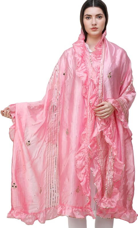 Candy-Pink Dupatta from Amritsar with Gota Patches and Frill Border