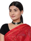 64e4a051fbcc09b0d2a80c8dCardinal American Diamond Multistring Green Onyx Brass Gold Plated Choker Necklace set