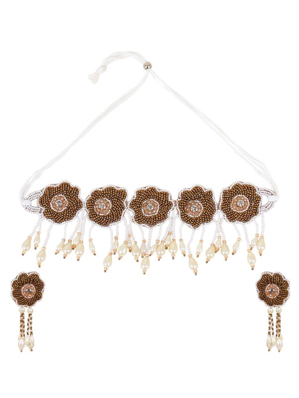 64de1c0ba510ac8273c8c052Cardinal Brown color Beads Floral Geometric Design Thread Weaving Choker Necklace Set