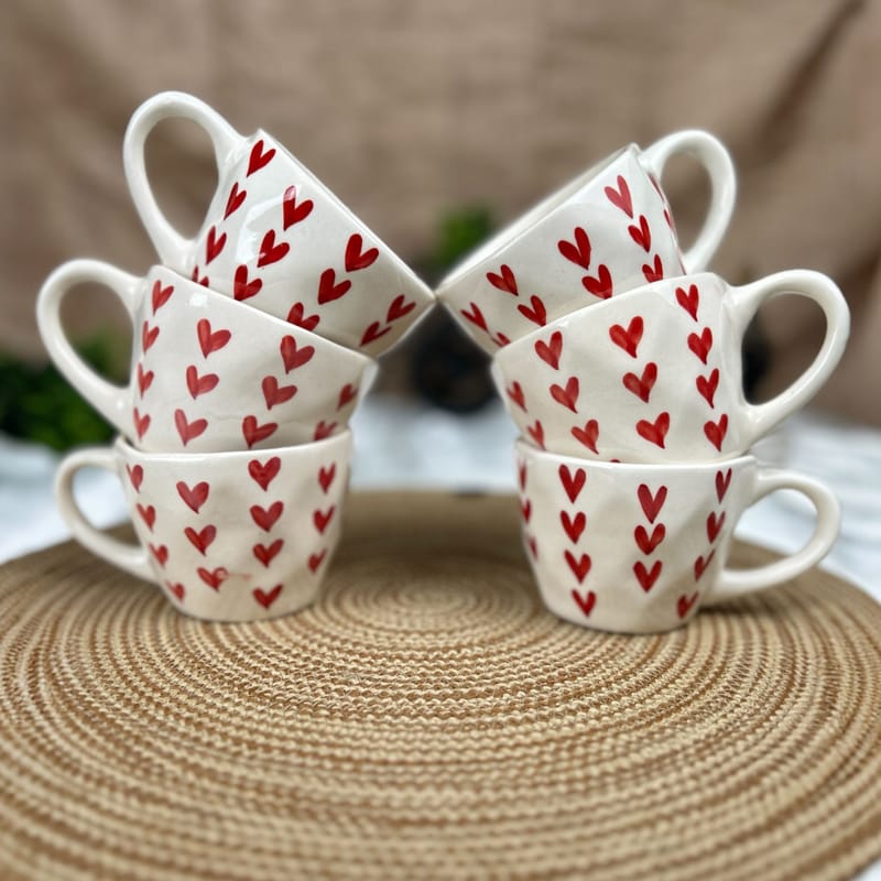 Introducing our Ceramic Red Heart cups Set experience. Crafted with meticulous attention to detail, each piece is made from high-quality ceramic, ensuring durability and long-lasting beauty. The vibrant red color adds a bold touch to your table, while the heart-shaped design, adds a whimsical and romantic flair. Enhance your tea or coffee ritual with our Ceramic Red Heart Cups set– an enchanting blend of style and functionality that will elevate any beverage experience. Add it to your collection today and sip in style.