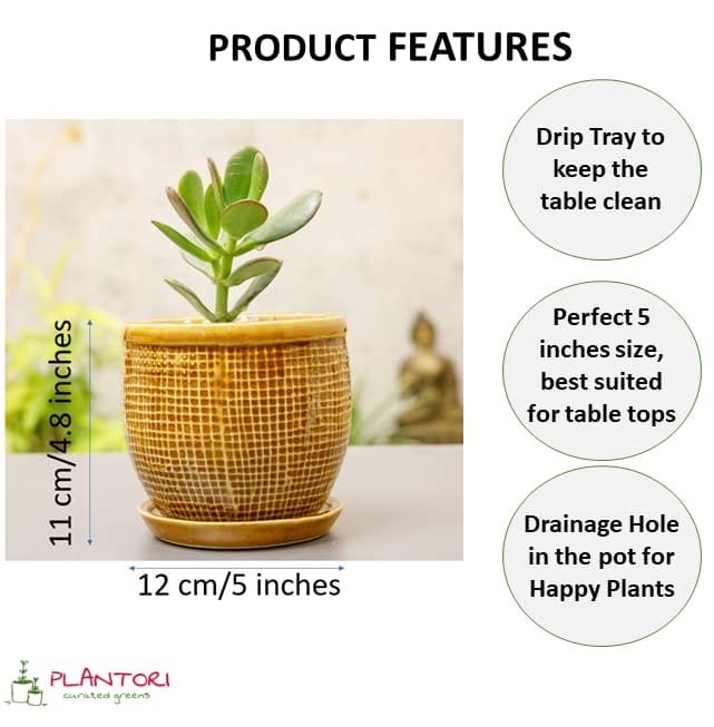 Our grey ceramic planters are perfectly sized for a variety of indoor plants, including syngonium, ginseng ficus, peace lilies, jade, and more. Plus, the tray/plate/saucer with pots ensures that your desk will be clean and tidy, no matter how much you water your indoor or outdoor plants.