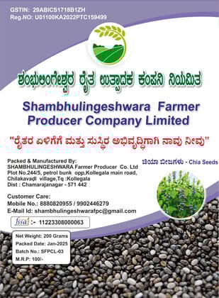 Our premium quality Chia seeds are sourced directly from the farmers of Shambhulingeshwara Farmer Producer Company Limited, ensuring you get the freshest and most authentic product. These nutrient-rich seeds are packed with essential vitamins, minerals, and antioxidants, making them a great addition to your daily diet.