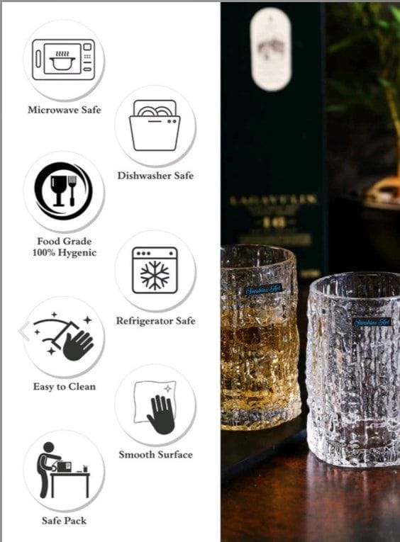 The bourbon glasses are packed in a triple layer of bubble wrap and packed in a box so that your glasses reach you intake.