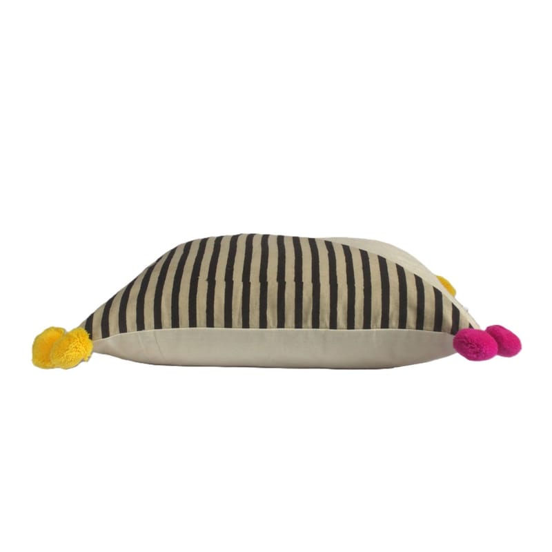Elevate your home decor with our Classic Cotton Cushion Cover, crafted from a blend of solid off-white fabric and block-printed black stripes on a cream base.