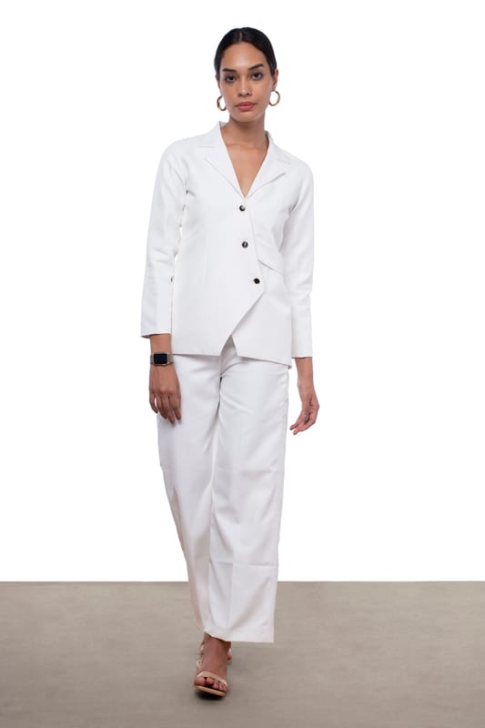 Introducing our Classic Overlap Blazer Co-ord Set, the pinnacle of timeless sophistication and modern style. This versatile ensemble is meticulously crafted to become a staple in your wardrobe, effortlessly blending classic charm with contempor...