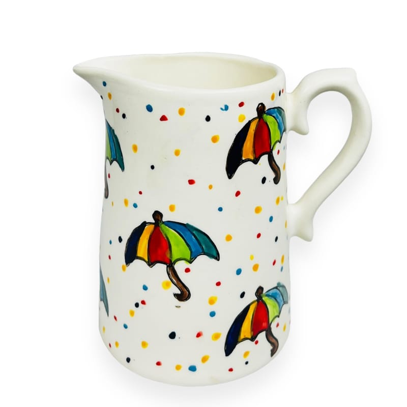Introducing our exquisite Ceramic Red Umbrella Handpainted Water or Milk Jug, a charming addition to your kitchen or dining table that effortlessly combines functionality with artistic flair.Perfect to serve morning juice, shakes, milk, a...