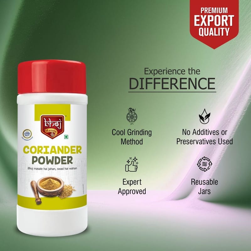 Welcome to the aromatic world of Bhoj Masale’s Coriander Powder / Dhania Masala! Our Every Masala is 100% Vegan. No Colour, No Preservatives, No Onion, No Garlic. Pure Jain Masala