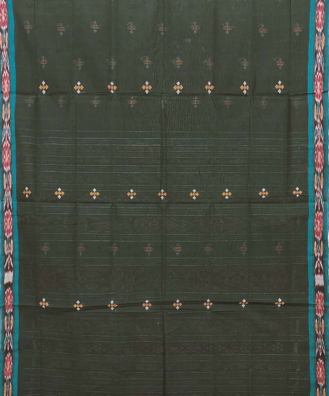 66011405b58bf5e6949018a4Dark Green Sambalpuri Handwoven Single Ikat Cotton Saree SFCSAR1371