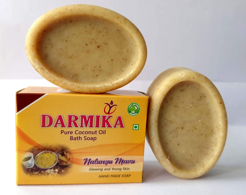 Read MoreDarmika handmade organic nalugu mavu,Neem,rose,cucumber and aloevera bath Soap made by wood clod pressed coconut oil, nalugu mavu and other natural organic products. Not added any chemical and fragrance. Home Hand Made.