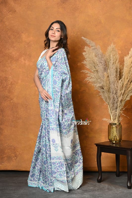 Premium Quality Cotton Saree embodies timeless artistry of handblock printing, where skilled artisans meticulously carve intricate designs onto wooden blocks and stamp them onto the fabric with natural dyes derived from plants, flowers, and minerals. Promising unparalleled softness & ease of wear as the handblock prints adds dimension and depth to the fabric. Available in beautiful shades, they are perfect for daily wear & office wears.