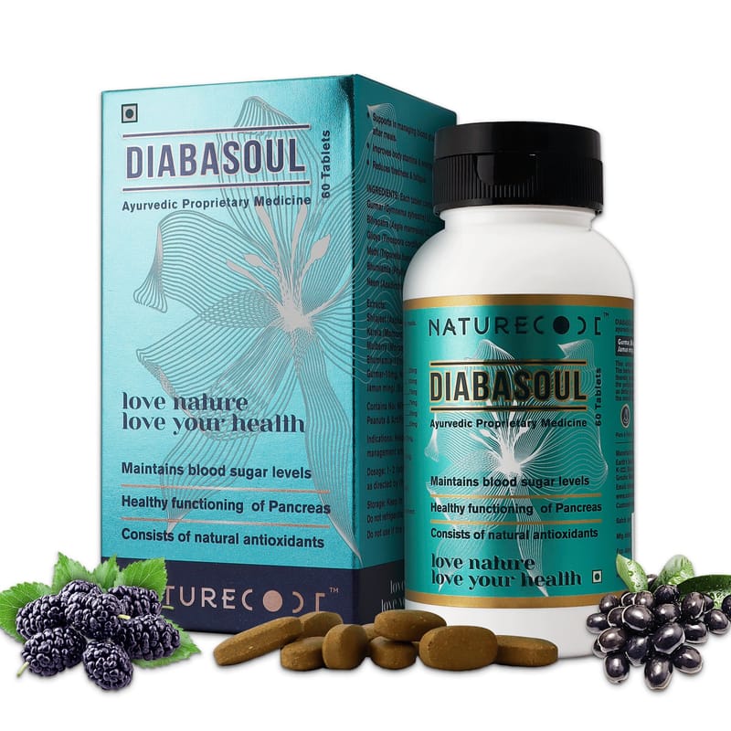 DIABASOUL Tablet is a perfect combination of highly effective ayurvedic herbs and extracts: Gurmar, Bilvapatra, Shilajeet, karela, Methi, Giloya, Jamun Mingi, Neem, Bhumiamla, and Mulberry. This unique blend helps in managing blood sugar glucose levels. The herbs act by stimulating insulin-producing cells (beta cells) thereby increasing insulin production and also aid in reducing the peripheral insulin resistance (prevents sugar spike) as well as delay glucose absorption from intestines. Moreover, it boosts the overall body immunity.