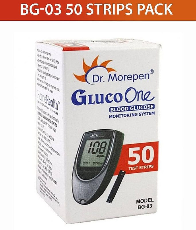 Dr. Morepen Bg03 Bloodglucose Test Strips, 50 Strips (Black/White)