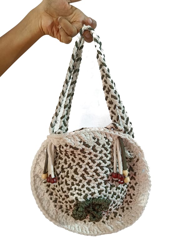 Exquisitely handcrafted by skilled artisans of Falah Handicraft Society, this stunning Macrame Shoulder Bag is a testament to their love and hard work. Featuring a unique round shape design, this versatile bag effortlessly d...