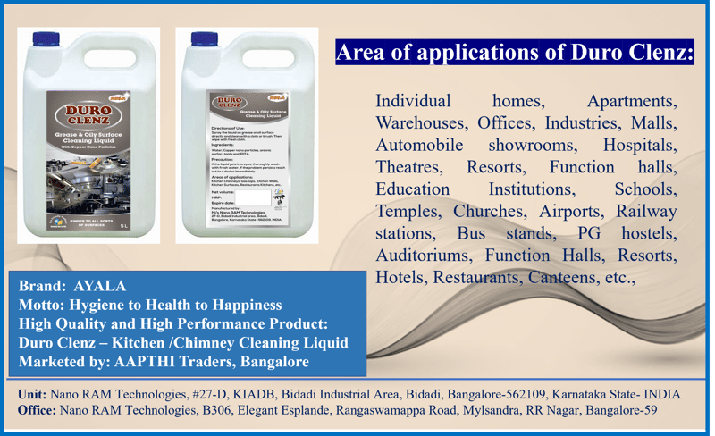 Read MoreDuro Clenz is kitchen cleaning liquid a water based unique formula with copper as main ingredient to kill all types of germs along with soft chemicals.