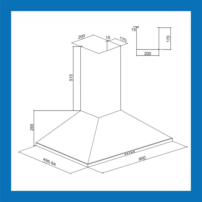 | Common name | Electric Kitchen Chimney, Pyramid Shape Baffle filters 90cm 1250 m3/h - Black (6054 BL 90) |