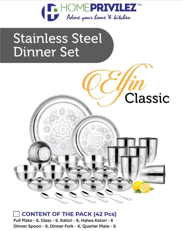 • GIFTING : ELFIN PREMIUM DINNER SET is so elegant and of high quality that it can be used as a Gifting Option at any wedding function or Housewarming Party.