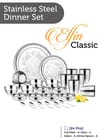 ELFIN CLASSIC DINNER SET PACKAGE CONTENT: Dinner Plates, Side Plates, Glasses, Bowls, Halwa Katori, Dessert Spoons, Dessert Fork.