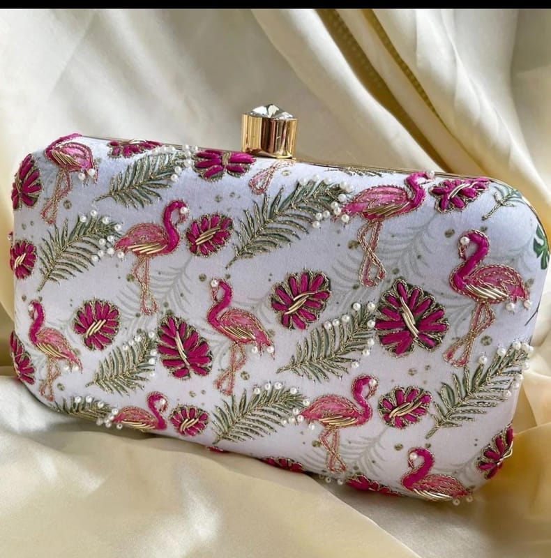 A Stylish And Elegant Clutch Cum Sling Bag Handicraft For Women, Hand Embroidered Clutch With Multi Color Beaded & Sequins Work In Floral Printed Silk Fabric Outer Material Is Made Of Silk Satin Fabric And Inner Material Is Made Of Viscose ...