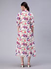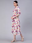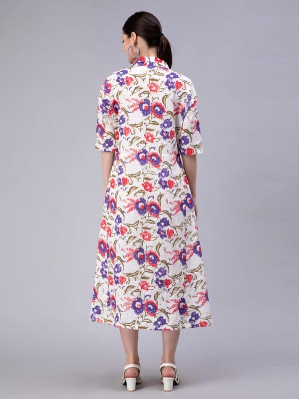 Floral -printed dress from ENTELLUS featuring multicolour, off-white soft cotton, with coconut button in front, all over print. It possesses a style enhancement, Team this dress with a pair of ballerinas for chic look.