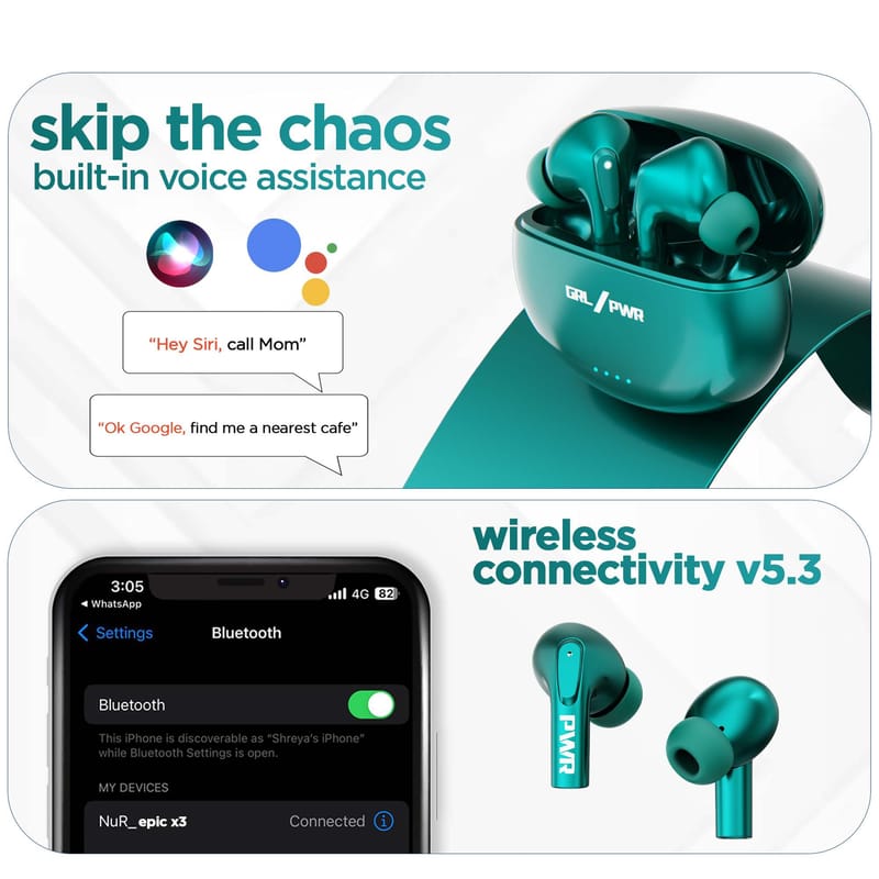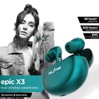 Epic X3 true wireless earphones feature 13mm neodymium drivers and powerful dual mics with built-in ENC. Experience bass like pure bliss for a long time with a 48-hours* playback time.These earphones are compactly designed to keep up with your dai...